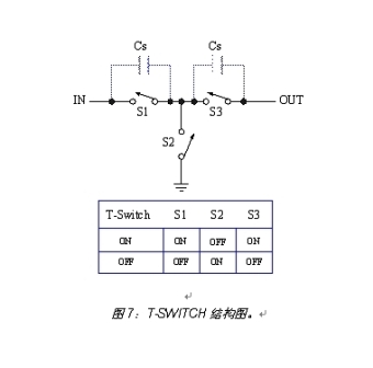 隔離度和串?dāng)_作為模擬開(kāi)關(guān)的又一項(xiàng)重要性能指標(biāo),在高頻率信號(hào)的切換中越來(lái)越受到人們的關(guān)注。英聯(lián)電子的高隔離度模擬開(kāi)關(guān)采用T-Switch結(jié)構(gòu),有效實(shí)現(xiàn)了信號(hào)隔離,抑制了信號(hào)串?dāng)_。圖7是T-Switch結(jié)構(gòu)圖。當(dāng)開(kāi)關(guān)導(dǎo)通時(shí),內(nèi)部的S1、S3閉合,S2斷開(kāi),從而實(shí)現(xiàn)信號(hào)的有效傳輸;當(dāng)開(kāi)關(guān)斷開(kāi)時(shí),S1、S3斷開(kāi),S2 閉合,這樣輸入端-Cs-地形成了一條耦合回路,同時(shí)由于兩個(gè)Cs導(dǎo)通寄生電容的存在,輸入信號(hào)更難耦合到信號(hào)輸出級(jí),這樣提高了開(kāi)關(guān)的隔離度和抗串?dāng)_能力。