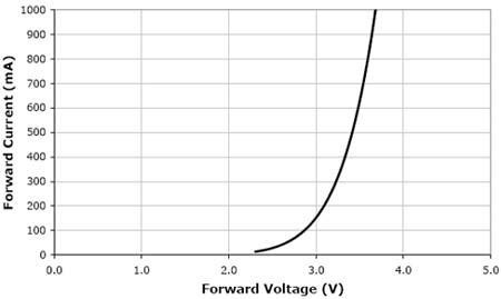 圖1. XLampXP-G的輸出相對(duì)光強(qiáng)和正向電流的關(guān)系