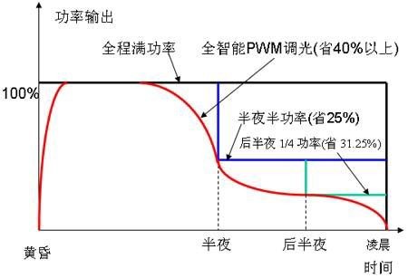 一般來說,路燈到半夜以后就沒有什么用處了,所以通常的做法是12點(diǎn)以后關(guān)燈或者開一半亮度。但是最合理的做法是根據(jù)交通流量來控制路燈的亮度,甚至是完全自適應(yīng)地控制亮度。圖10就是根據(jù)當(dāng)?shù)亟煌髁康慕y(tǒng)計(jì)值來調(diào)節(jié)路燈亮度的一個(gè)例子。