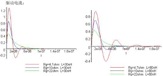 關(guān)于Rg、L對于上升時間的影響:(Cgs=1nF,VCgs=0.9*Vdrive)