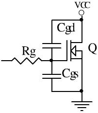 實(shí)際使用中還要考慮MOSFET柵漏極還有個電容Cgd的影響,MOSFET ON時Rg還要對Cgd充電,會改變電壓上升斜率,OFF時VCC會通過Cgd向Cgs充電,此時必須保證Cgs上的電荷快速放掉,否則會導(dǎo)致MOSFET的異常導(dǎo)通。