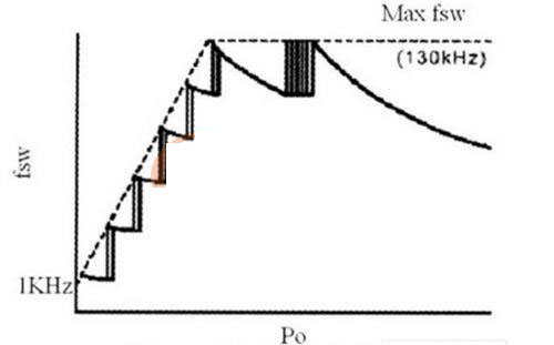 降低開關(guān)電源功耗的主要途徑是降低開關(guān)損耗和控制電路功耗。減少控制電路功耗可通過選擇功耗低、功能強、所需外部元件少的控制芯片及簡化外部控制電路來實現(xiàn)。這里主要討論降低開關(guān)損耗的措施。許多電子產(chǎn)品在使用中常處于輕載或待機狀態(tài),而開關(guān)電源*率開關(guān)管的開關(guān)頻率都很高,當(dāng)開關(guān)電源工作在輕載或待機狀態(tài)下時,開關(guān)損耗成為主要損耗,相對損耗大大增加,效率降低。降低輕載損耗的有效方法是在輕載狀態(tài)下降低開關(guān)電源的開關(guān)頻率,從而使輕載效率保持與滿載時相同。圖1中,隔離變換控制電路采用準(zhǔn)諧振電源控制器FA5531P及外圍元件構(gòu)成。FA5531P的開關(guān)頻率不是由他激振蕩器決定的固定開關(guān)頻率,而是由自激振蕩決定。芯片在正常負(fù)載時保持固定頻率的準(zhǔn)諧振開關(guān)狀態(tài),輕載時自動降低開關(guān)頻率以減少空載損耗,最低開關(guān)頻率可降至1KHz,F(xiàn)A5531P開關(guān)頻率與輸出功率關(guān)系如圖3所示。FA5531P的另一個特點是具有內(nèi)部啟動電路,從而也降低了待機功耗。FA5531P自身功耗很低,工作電流僅1.5mA,集成度高,只需極少的外部元件。