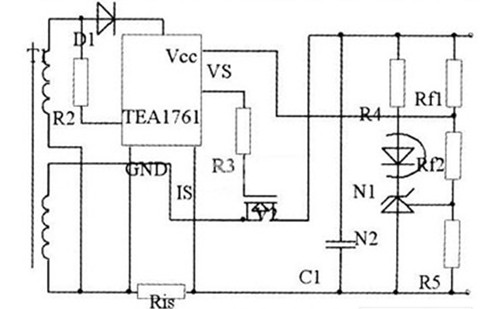 采用TEAl761T的同步整流電路如圖6所示。同步信號SRSENSE直接取自高頻變壓器次級,R3是輸出電流取樣電阻,通過選擇合適的R3的阻值,可控制最大輸出電流。TEA1761T具有欠電壓鎖定和啟動功能,D2為TEA1761T提供電源,同時檢測輸出電壓,當(dāng)Vcc引腳電壓高于8.6V,TEA1761T激活同步整流電路和輸出電壓與輸出電流檢測電路。當(dāng)電壓低于8.1v時,則進(jìn)入欠電壓鎖定狀態(tài),驅(qū)動輸出保持低電平,光耦反饋輸出被封鎖。