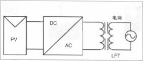 工頻隔離并網(wǎng)逆變器(如圖3)具有電氣隔離、消除電流直流分量等優(yōu)點(diǎn),但體積重量大、價格高,只有94%—96%的系統(tǒng)效率。