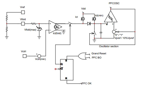 在下列情況時(shí),VLBO可下拉至2V(VLBO(PD)):VLBO高于2V(高線路電壓時(shí)),以及VCTRL處于最大值的時(shí)間長(zhǎng)于4ms(tPFCflag);Vbulk低于額定輸出的95%時(shí)。PFCPowerBoost功能在啟動(dòng)時(shí)被禁止;最長(zhǎng)下拉持續(xù)時(shí)間的典型值為5ms(tLBO(PDlimit));在后續(xù)最少70ms時(shí)間(tLBO(PDblank))內(nèi),開關(guān)保持在開路狀態(tài)。