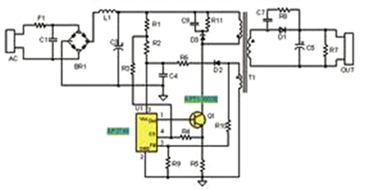 1. 基于最新的LED專用驅(qū)動(dòng)芯片AP3766,采用原邊控制方式,無須光耦和副邊電流控制電路,實(shí)現(xiàn)隔離恒流輸出,電路結(jié)構(gòu)簡單。通過電阻R5檢測(cè)原邊電 流,控制原邊電流峰值恒定,同時(shí)控制開關(guān)占空比,保持輸出二極管D1的導(dǎo)通時(shí)間和整個(gè)開關(guān)周期時(shí)間比例恒定,實(shí)現(xiàn)了輸出電流的恒定。