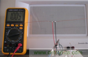 這樣就大功告成啦!我們可以把它放到微波爐附近來探測泄露出來的微波強(qiáng)度。