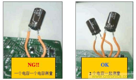 B.將待測(cè)電容連接上導(dǎo)線時(shí)要將電容移動(dòng)至基板的錫面?zhèn)?,利用A 或B 方法測(cè)定,此外,盡可能的將導(dǎo)線縮短。
