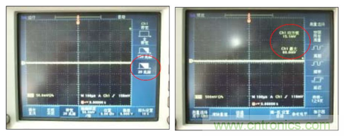 (3)調(diào)試示波器屏幕顯示測(cè)量值〈均方根〉、〈最大值〉二個(gè)測(cè)量項(xiàng)目。如下: