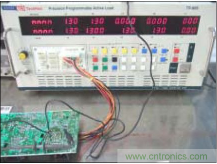 (2)依待測(cè)電源板負(fù)載條件對(duì)電源板輸出端進(jìn)行帶載調(diào)試,可用電子負(fù)載帶載.如下圖: