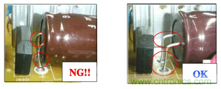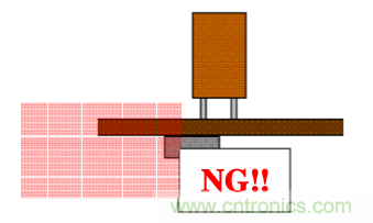 進(jìn)行臥裝時(shí)請(qǐng)勿在電解電容端子根部施加力量. 如下圖: