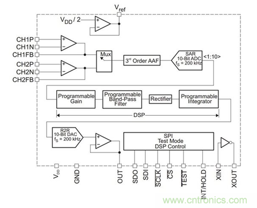 表 2 顯示了各種頻率輸入信號(hào)的輸出信號(hào)振幅的測試數(shù)據(jù)。 已對每個(gè)器件的帶通濾波器進(jìn)行編程,使其具有 6.94kHz 的中心頻率,因此應(yīng)抑制遠(yuǎn)離該中心頻率的輸入信號(hào)。