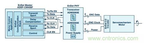 本文討論的EnDat接口是在ADI公司的ADSP-CM40x上實(shí)現(xiàn),后者是一款針對電機(jī)控制驅(qū)動器而開發(fā)的處理器。除了脈寬調(diào)制器(PWM)定時器、模數(shù)轉(zhuǎn)換器(ADC)和sinc濾波器等用于電機(jī)控制的外設(shè)以外,ADSP-CM40x還有高度靈活的串行端口(SPORT)。