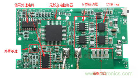 這種SoC方案下,PCB上只有一顆大芯片,和兩個MOS管,相當簡潔。SOC內部集成了無線充電驅動,H橋驅動器,運放,內置溫度保護功能等,一顆芯片實現(xiàn)所有功能,可有效控制成本和精簡生產流程。
