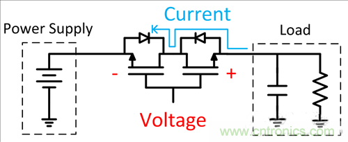 圖3:用雙FET實現(xiàn)的反向電流阻斷