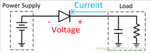 基于這些原因,肖特基二極管是常見的替代器件;它們的正向壓降更低。不過,它們也更加昂貴,且具有更高的反向電流泄露,而這會導(dǎo)致系統(tǒng)問題。圖2顯示的是系統(tǒng)中的一個用來阻斷反向電流的二極管。