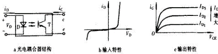 光電耦合器(簡稱光耦),是一種把發(fā)光元件和光敏元件封裝在同一殼體內,中間通過電→光→電的轉換來傳輸電信號的半導體光電子器件。光電耦合器可根據不同要求,由不同種類的發(fā)光元件和光敏元件組合成許多系列的光電耦合器。目前應用最廣的是發(fā)光二極管和光敏三極管組合成的光電耦合器,其內部結構如圖1a所示。