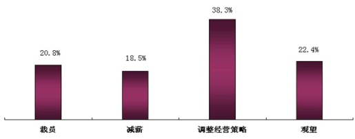 此項(xiàng)調(diào)查結(jié)果出乎我們的意料,選擇裁員的企業(yè)已經(jīng)占到了20.8%,但是多數(shù)企業(yè)還是選擇了調(diào)整經(jīng)營策略。我們特別希望有遠(yuǎn)見的企業(yè)不要把裁員作為應(yīng)對危機(jī)的主要措施,這也不符合我們“和諧社會”的主旋律。只要能正確的面對,認(rèn)真分析企業(yè)的優(yōu)勢,研究市場的動向,合理配置企業(yè)資源,充分發(fā)揮員工的潛力,調(diào)動員工的積極性,企業(yè)一定會有新的轉(zhuǎn)機(jī)。企業(yè)如能和員工共克時(shí)艱,就會加深員工對企業(yè)的感情,這種情感會轉(zhuǎn)化為企業(yè)的一種優(yōu)勢資源。(見圖表四)
