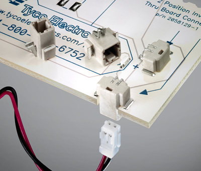 泰科電子此次推出的全新SMT通板連接器具備2位至6位并使用表面貼裝技術(shù),運(yùn)用時(shí)穿過(guò)電路板使接口轉(zhuǎn)至PCB板的背面,該連接器的反向設(shè)計(jì)使得在建筑、住宅及某些商業(yè)應(yīng)用上的固態(tài)LED 照明的安裝操作更為簡(jiǎn)便。該連接器與標(biāo)準(zhǔn)型Mini CT連接器完全匹配。Mini CT連接器適合24 AWG電線,額定電流為3安培。