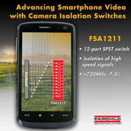 FSA1211具有超過720MHz的帶寬和高ESD (5.5 kV)特性,是高速數(shù)據(jù)路徑上隔離電容和保持信號完整性的最佳解決方案。此外,當隔離多余的并行接口時,F(xiàn)SA1211可以減小信號路徑上的EMI輻射干擾,提升射頻靈敏度降幅 (RF desense)。傳統(tǒng)的并行解決方案由于產(chǎn)生額外的“走線分支”(stub),所以會導(dǎo)致信號衰減,從而使相機模塊的圖像劣化。采用三個模擬開關(guān)抑或是一種解決方案,但這會增加設(shè)計的復(fù)雜程度,并提高了整體材料清單 (BOM) 成本。相比而言,F(xiàn)SA1211以更為優(yōu)勢的成本提供了穩(wěn)健的隔離性能和簡單的設(shè)計方法。