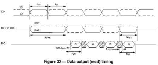 1.讀操作DQS跳變點與DQ跳變沿對齊,寫操作DQS跳變點對齊DQ中心。