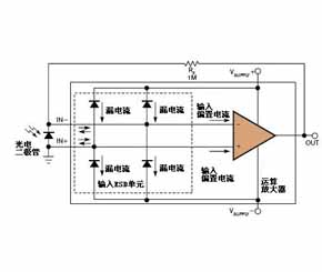 當(dāng)您研究JFET或者CMOS輸入放大器時(shí),術(shù)語(yǔ)“輸入偏置電流”便失去了它的意義。使用這類放大器,從放大器輸入引腳下拉或者吸取的電流實(shí)際上為輸入ESD(靜電放電)單元(請(qǐng)參見圖1)的漏電流。