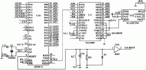 ECU(AT89C51)+CAN控制器(SJA1000)+CAN收發(fā)器(PCA82C250)的電路結(jié)構(gòu)以下是其核心芯片簡(jiǎn)介: