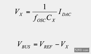 而匯流排電壓結果是根據(jù)切換頻率、感測器電容值以及IDAC電流所決定的。CBUS可作為旁路電容器(bypasscapacitor),來穩(wěn)定所產(chǎn)生的電壓。匯流排上的電容值可增加以進一步提升穩(wěn)定度。外部電容器則會影響效能與時序等需求。