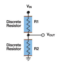 通過(guò)選擇單片襯底上的高精度薄膜分壓器,設(shè)計(jì)人員可以確保分壓器中的電阻元件具有非常相似的電氣特性,并在溫度和時(shí)間變化時(shí)實(shí)現(xiàn)很好的跟蹤。在公用襯底上的材料和處理過(guò)程的相似性確保了分壓器能夠在所有比值和環(huán)境下更為穩(wěn)定,且性能更好。