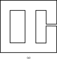 常見的多功能鐵心結(jié)構(gòu)主要是平面布置的形式(圖9)。圖9(a)是一個變壓器和一個電抗器的鐵心結(jié)構(gòu)。圖9(b)是一個變壓器和兩個電抗器的鐵心結(jié)構(gòu)。圖10巧妙地采用兩種軟磁材料組成多功能鐵心結(jié)構(gòu)。圖10(a)外框鐵心采用高導(dǎo)磁合金材料,形成變壓器,中間采用低導(dǎo)磁材料形成電抗器。除了這種框形加中間柱結(jié)構(gòu)而外,還有圖10(b)的橋式多功能鐵心結(jié)構(gòu),四個橋臂用高導(dǎo)磁材料,橋?qū)蔷€用低導(dǎo)磁材料或者開一個氣隙。