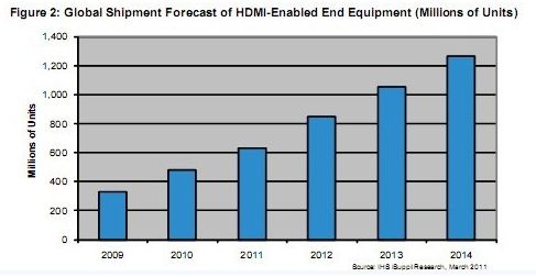 - HDMI 2011年全球出貨量增長(zhǎng)到6.291億個(gè)