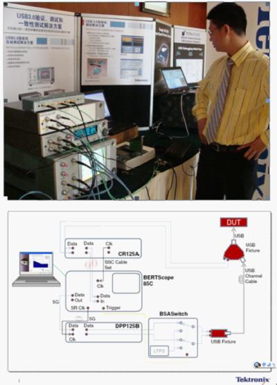 如USB2.0應(yīng)用一樣,泰克為USB3.0的發(fā)射機(jī)測(cè)試提供了超過(guò)規(guī)范要求的完整解決方案(手動(dòng)和自動(dòng)可選)。對(duì)于復(fù)雜得多的接收機(jī)測(cè)試,泰克則展示了最新的BERTScope解決方案,可幫助開(kāi)發(fā)者加快USB3.0的一致性測(cè)試速度。