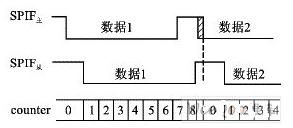 通過(guò)對(duì)從器件的波形分析發(fā)現(xiàn),counter=8后的第一個(gè)時(shí)鐘周期,數(shù)據(jù)最后一位的傳輸已經(jīng)完成。在數(shù)據(jù)已經(jīng)收/發(fā)完畢的情況下,counter=8狀態(tài)的長(zhǎng)短對(duì)數(shù)據(jù)的正確性沒(méi)有影響,因此可以縮短counter=8的狀態(tài),以避免前一個(gè)SPIF和后一個(gè)SPIF相重疊。這樣,從硬件上避免了這一階段的溢出錯(cuò)誤。