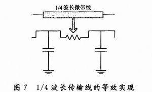 這是一個(gè)180°定向耦合器,也稱為rat-race網(wǎng)絡(luò),如圖5所示。物理上可以通過微帶實(shí)現(xiàn),如圖6所示。然而對于第1部分提出的710 MHz天線,由于波長太長,這樣的耦合器在移動(dòng)設(shè)備上無法實(shí)現(xiàn)。為了實(shí)現(xiàn)去耦合,可以用貼片電感和電容做出成等效傳輸線,從而用電感和電容做成一個(gè)耦合網(wǎng)絡(luò),這就可以顯著降低耦合器占用的體積。如圖7所示,一個(gè)等效1/4波長傳輸線可以用兩個(gè)電容和一個(gè)電感來等效代替。電容和電感的計(jì)算公式為: