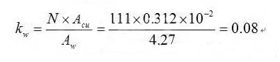 選擇d=0.63mm,d’=0.70mm,截面積Acu=0.312mm2。
