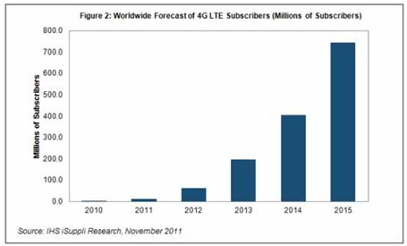 根據(jù)IHS iSuppli公司的智能手機(jī)與融合設(shè)備市場研究報告顯示,在移動網(wǎng)絡(luò)運(yùn)營商的大力支持下,下一代4G無線標(biāo)準(zhǔn)——長期演進(jìn)(LTE)在今年以及未來幾年將取得驚人的增長,增長率將高達(dá)數(shù)倍甚至數(shù)十倍,到2015年其用戶數(shù)量將達(dá)到相當(dāng)可觀的水平。
