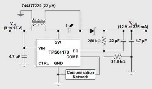 盡管DC/DC單端初級電感轉(zhuǎn)換器 (SEPIC) 拓?fù)洳皇鞘裁葱聳|西,但的確直到最近它才開始流行起來,然而,對于能夠?qū)Ω叩洼斎腚妷褐g的輸出電壓(例如:12V未校準(zhǔn)插墻式電源)進(jìn)行調(diào)節(jié)的轉(zhuǎn)換器需求一直都存在。雖然我們可以將任何升壓轉(zhuǎn)換器/控制器配置為一個 SEPIC,但其在最近才得到普遍的使用。兩個因素促進(jìn)了 SEPIC 的人氣大增:(1) IC 制造廠商已經(jīng)開始制造更多具有電流模式控制功能的升壓控制器,旨在簡化補(bǔ)償;(2) 電感制造廠商已經(jīng)開始制造許多可以最小化轉(zhuǎn)換器總 PCB 體積的單封裝耦合電感。改用耦合電感以后,許多具有兩個單獨(dú)電感應(yīng)用的電源體積可以縮減三分之一。圖 1 顯示了使用TITPS61170 和Wuerth 744877220 的一個SEPIC。