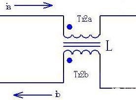 圖1所示的是共模電感的濾波電路,Tr2a和Tr2b就是共模電感L的兩個線圈。這兩個線圈繞在同一磁芯上,匝數(shù)和相位都相同。這樣,當電路中流過電流ia和ib的大小相同、方向相反時,電流在同相位繞制的電感線圈中產(chǎn)生反向的磁場而相互抵消,磁芯中沒有交變的磁通量產(chǎn)生。