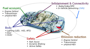 隨著西方汽車市場需求的復(fù)蘇以及發(fā)展中經(jīng)濟(jì)體車輛數(shù)目的持續(xù)增長使燃料消耗和污染不斷增加,政府和制造商都在積極探索改善燃油經(jīng)濟(jì)性以節(jié)約能源、減少排放的途徑,汽車中越來越多的電子功能也使半導(dǎo)體元件在車輛中的比重不斷激增。面對環(huán)保和豐富消費(fèi)者體驗(yàn)的雙重挑戰(zhàn),半導(dǎo)體制造商正在利用其技術(shù)專長開發(fā)各種符合汽車規(guī)范的解決方案。