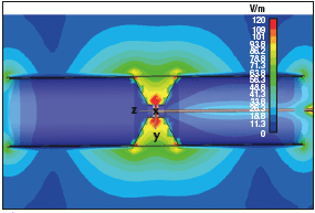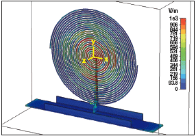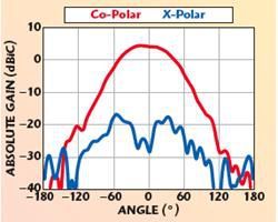 螺旋天線很早以前就開始用于軍事應(yīng)用中的測向和通常的威脅識別。圖1給出了一種典型的2到18GHz腔基螺旋天線,圖2給出了使用這種天線進行的一次電磁仿真,顯示了此構(gòu)造不同部分上的場強。在這些應(yīng)用中,通常要求天線的幅度和相位每一個都是統(tǒng)一樣式。還要求主瓣應(yīng)該擁有平滑的曲線,沒有任何拐點,即為單調(diào)的。這種天線典型輻射圖樣如圖3所示。通常這些應(yīng)用中更重要的是控制波束形狀并使各個天線元的性能匹配,而不是使天線增益最大化。對于許多商業(yè)通信系統(tǒng),更重要的是給某個區(qū)域有效地填充信號而不是產(chǎn)生非常精確的波束形狀。