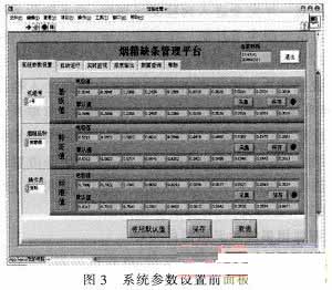 如圖2所示,上位機煙箱缺條管理平臺系統(tǒng)主要包括串口通訊、參數(shù)設置、系統(tǒng)報警、數(shù)據(jù)存儲、報表輸出、剔除信號輸出等6大模塊;利用LabVIEW建立與下位機進行串口通訊的子VI,對接收到的數(shù)據(jù)進行處理,判斷是否發(fā)生缺條。當發(fā)生缺條時,上位機除了產(chǎn)生剔除控制信號、報警之外,還將缺條信息存入數(shù)據(jù)庫中,方便操作人員日后查詢等。圖3為煙箱缺條管理平臺的參數(shù)設置前面板圖。
