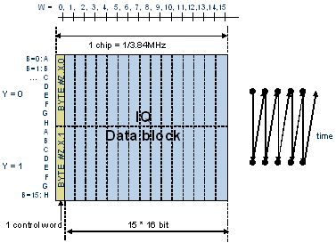 CPRI幀分成基本幀單元和超幀單元?;編瑔卧膸l是3.84MHz,包括16個字(表示為W=0…15,其中W0為控制字,后15個字為I/Q數(shù)據(jù)),根據(jù)不同的鏈路速率,字的長度分別為8bits、16bits(如圖7所示)、32bits。超幀單元是由256個基本幀單元組成,其中,第1個基本幀單元里的控制字寫入K28.5標(biāo)志作為超幀的同步控制信息,其余的255個基本幀單元里的控制字包含控制和管理字(C&M)、廠商自定義控制字等,并預(yù)留一些控制字。