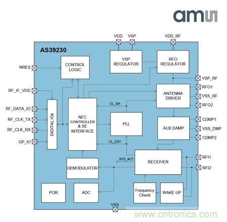ams的新AS39230可提升天線信號(hào)質(zhì)量,從NFC標(biāo)簽、卡或卡仿真器向NFC讀寫器發(fā)送信號(hào),AS39230的信號(hào)強(qiáng)度是采用傳統(tǒng)無源負(fù)載調(diào)制(PLM,passive load modulation)方法的10倍。在空間受限的設(shè)計(jì)中,天線尺寸可縮至二十分之一,面積僅為100mm2或更小,同時(shí)可以保持信號(hào)強(qiáng)度不變。AS39230甚至準(zhǔn)許產(chǎn)品的金屬殼充當(dāng)天線,將NFC天線所需的電路板空間及相關(guān)成本降至零。