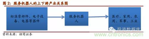 服務(wù)機器人行業(yè)生產(chǎn)所用的主要零部件為自動焊機、電子器件、微處理器、機器人用伺服電機、高精度減速器、機加件、氣動元器件、傳感器、電池、單板機等,歸屬于標(biāo)準(zhǔn)零部件、電子設(shè)備以及電子元器件等。服務(wù)機器人產(chǎn)業(yè)的下游則主要是醫(yī)療、家用、農(nóng)用、軍事等行業(yè)和領(lǐng)域。