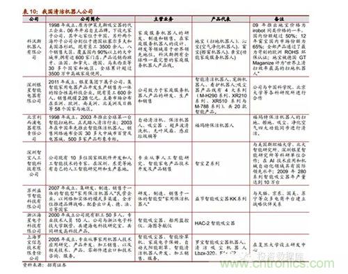 根據(jù)中國品牌網(wǎng)統(tǒng)計公布的2013年十大掃地機器人品牌排行榜,我國國產(chǎn)掃地機器人有6家上榜。目前為止,我國已經(jīng)有一部分表現(xiàn)優(yōu)良的企業(yè)涉足家用清潔機器人的開發(fā)和生產(chǎn),都和國內(nèi)高校研發(fā)機構(gòu)有所合作,做到研產(chǎn)結(jié)合。當(dāng)前機器人行業(yè)發(fā)展的宏觀前景良好,市場潛力巨大,目前我國會在未來出現(xiàn)一批在細分行業(yè)技術(shù)領(lǐng)先表現(xiàn)良好的潛力企業(yè)。