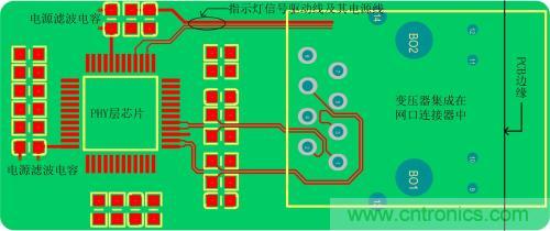 圖 2變壓器沒有集成在網(wǎng)口連接器的電路PCB布局、布線參考