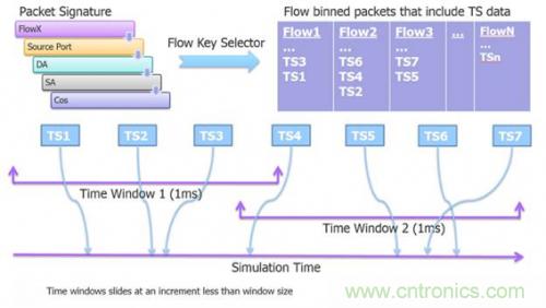 硬件仿真的標(biāo)志之一是,它能對(duì)大型復(fù)雜系統(tǒng)進(jìn)行復(fù)雜性能分析。某些情況下,可能需要數(shù)百萬(wàn)個(gè)數(shù)據(jù)包才能切中當(dāng)前設(shè)計(jì)中穩(wěn)態(tài)分析的要點(diǎn)。以測(cè)量百萬(wàn)兆以太網(wǎng)交換機(jī)的流量比特率為例??梢圆捎锰摂M以太網(wǎng)簽名生成和數(shù)據(jù)包時(shí)間戳 (TS) 來(lái)計(jì)算這些測(cè)量。