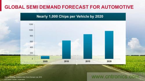 圖 1:汽車半導體正蓬勃發(fā)展,據(jù)分析人士預測,到 20201 年每輛汽車使用的芯片數(shù)量將接近1,000 枚,而 2005 年還不足 100 枚。