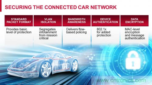 圖 2:作為汽車的網(wǎng)絡主干,有線以太網(wǎng)連接的固有安全特性有助于防護車載網(wǎng)絡免遭惡意攻擊、竊聽和未經(jīng)業(yè)務許可的設備的安裝等脅威。