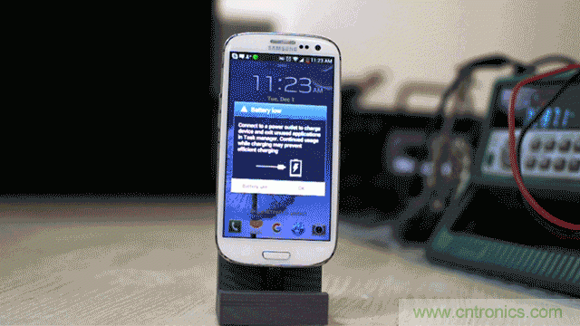 盒子里。緩沖電池的作用是先儲(chǔ)存接收到的電能,然后再給手機(jī)充電。據(jù) Ars Technica 描述,在發(fā)射器打開(kāi) 20 秒后,緩沖電池就開(kāi)始工作了,也就是說(shuō),手機(jī)座上的三星手機(jī)開(kāi)始顯示充電。